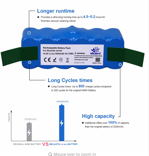 Replacement battery for the popular iRobot Roomba series vacuum cleaners. Perfectly compatible with the original.