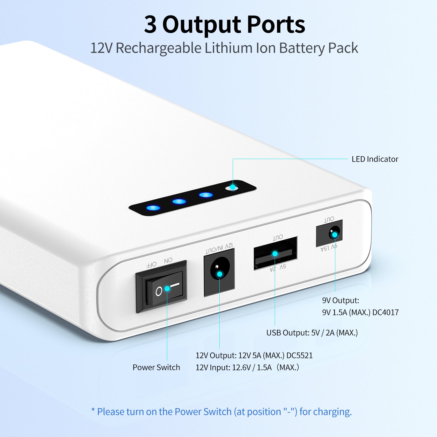• Multiple Output Ports:Equipped with 12V, 9V, and 5V DC outputs, this power bank caters to a wide range of devices, from telescopes to small speakers.